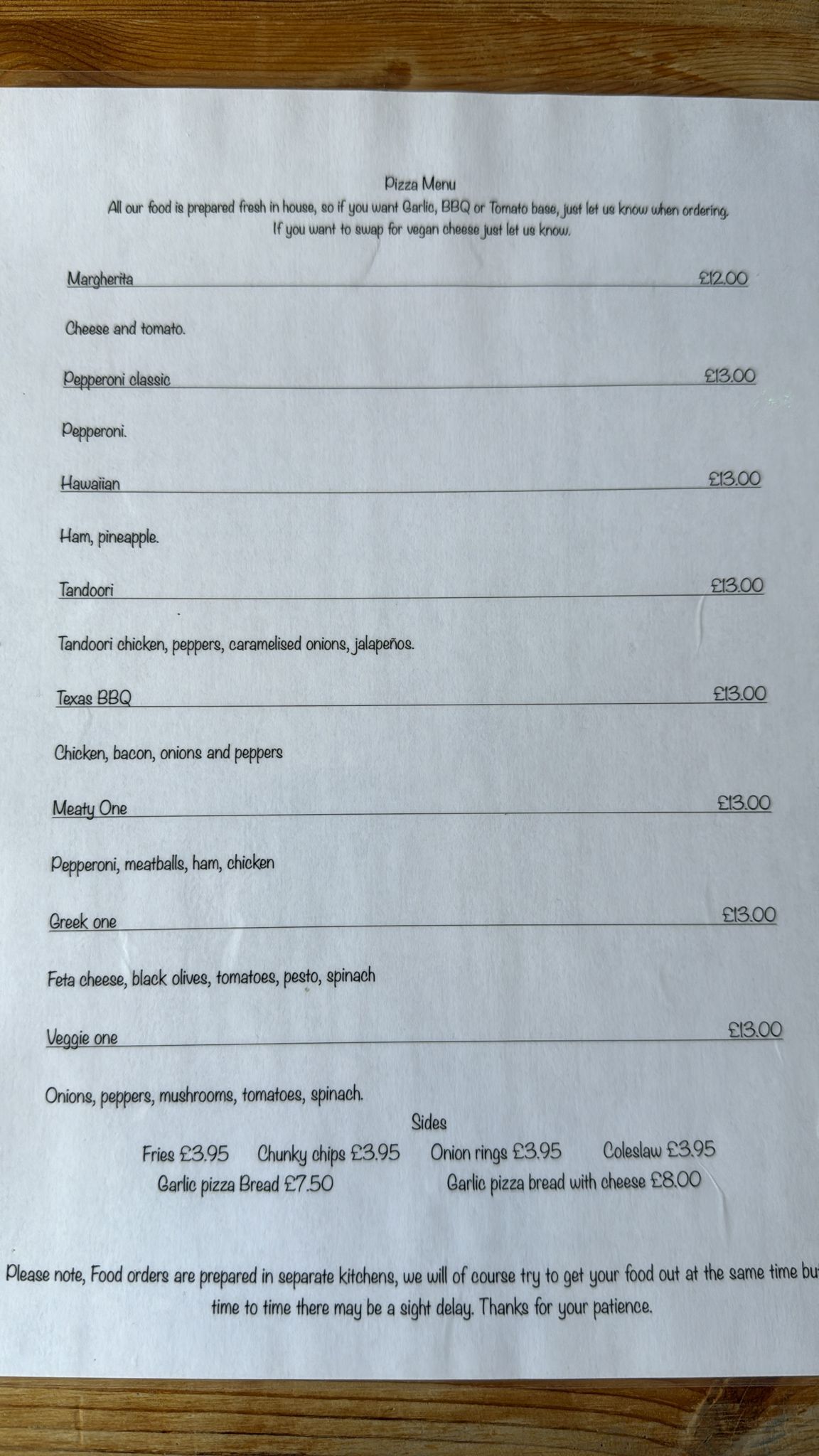 Pizza Menu